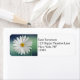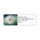 A serene photo of a single delicate with daisy. Soft dainty white petals with a bright yellow center. Le Background c'est le misty greenish blue color.