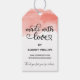 Cute fait avec des étiquettes de produit d'amour où vous pouvez ajouter votre nom et instructions de lavage pour votre article fait main. L'étiquette de produit comporte un lavage à l'aquarelle rose corail et un joli script noir avec un coeur. Une belle étiquette pour vos vêtements faits main vous pouvez ajouter vos coordonnées.