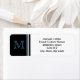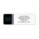 Voici une étiquette d'adresse de retour qui plaira au goût d'un homme. Bande bleue et blanche élégante avec arrière - plan noir contrasté fait ressortir le texte. Personnalisez avec votre propre logo/monogramme et texte. Utilisation à domicile ou au bureau d'affaires.