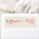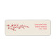 Un étiquette de adresse avec une aquarelle illustrant une branche de fleurs de cerisiers à gauche sur un arrière - plan blanc profond. Texte rouge à droite. Recherchez les invitations de mariage assorties, l'affranchissement, les cartes rsvp, et enregistrez les cartes de date à la paperie Jill's.