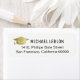 Votre propre nom et des informations supplémentaires (adresse dans un style de police élégant et mince) avec un casquette de graduation en faux or graphique sur un étiquette d'adresse blanche... pour diplômés