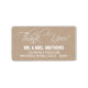 Script Merci Étiquettes de adresse Mariages. Elke Clarke© pour epclarke à Zazzle. Police en écriture blanche sur imprimé papier kraft beige vintage effet photo. Customisez avec votre nom et votre adresse de mariage. Idéal pour un mariage ou un mariage campagnard rustique