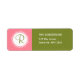 Étiquettes de adresse mignons rose et vert avec monogramme personnalisé.