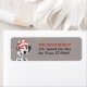 Le côté gauche de ces étiquettes d'adresse de retour de vacances présente un magnifique Chien dalmate portant un casquette de Père Noël rouge et blanc. L'image est placée sur un arrière - plan gris, et de minuscules confettis d'or donnent un peu de brillant. Votre texte personnalisé est en rouge et noir à droite.
