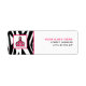 Étiquette d'adresse de retour pour les enseignants avec une illustration du logo Pink Schoolhouse à gauche sur un arrière - plan imprimé zèbre avec garniture rose. Personnalisez avec votre nom et votre adresse à droite.