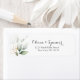 Verdure Feuille Gold Foil Aquarelle Retourner l'adresse Étiquettes Diverses verdure, feuilles aquarellés, et fausse feuille d'or plantes étiquettes de mariage élégantes et tendance. Cet élégant design botanique vert et doré et feuillu encadre vos détails mariages avec une bordure de feuillage pastel clair feuilles en or et vert. Personnalisez ces étiquettes de adresse botaniques contemporains, décorés sur le thème du jardin naturel, avec vos informations de cérémonie en lettres noires et lumineuses. Les fleurs vert émeraude et blanches sont neutres et parfaites pour de beaux mariages verts et or.