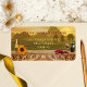 étiquette de adresse mariage représentant une peinture d'un paysage toscan italien avec du vin, du raisin et un tournesol. Et : sonneries mariages ! Agréable pour un mariage de automne ou un mariage à thème du vin.