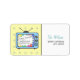 Un étiquette de adresse avec un arrière - plan jaune avec des pois verts sur le côté gauche. Illustration de la télévision bleu rétro. Le texte à la télévision dit : "Restez à l'écoute pour un message important de." Personnalisez avec votre nom et votre adresse à droite. Recherchez les articles correspondants chez Jill's Paperie.