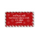 Ces étiquettes de adresse festifs ont une bordure rayée sucre de canne, avec un centre rouge et une couverture de flocon de neige.
