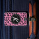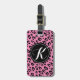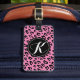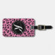 Étiquette de bagage à imprimé léopard monogrammé rose personnalisée Dessin de motif sportif d'animal sauvage exotique avec des lettres initiales de nom monogrammées élégantes et classiques. Idée de cadeau élégant pour hommes, femmes et enfants. Couleur de fond personnalisée, par exemple rose néon.