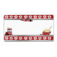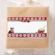 Un étiquette parfait pour boulanger ou boulangerie en rouge, blanc et noir. Le design comprend des bordures de fleurs en haut et en bas, un pot de biscuits avec des biscuits de coccinelle et des outils de cuisson.