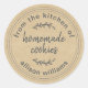 L'étiquette de biscuits faits maison Kraft Rustic présente un fond chaud de style kraft avec des lettrages au charbon doux et des accents botaniques simples pour un aspect invitant fait main. Parfait pour les boîtes à biscuits, les sachets de friandises, les bocaux et l'emballage de cadeaux faits maison, cet autocollant rond ajoute une touche personnelle charmante à vos pâtisseries. Idéal pour les boulangers de campagne, les cadeaux de fêtes, les marchés fermiers et l'emballage 'de la cuisine de'.