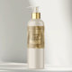 Cette élégante étiquette de produit pour bouteilles de cosmétiques présente un fond en or brossé faux. Cette étiquette contient un espace pour le nom de votre produit, le nom de votre entreprise, le poids du produit, les ingrédients, les instructions, les médias sociaux et l'adresse de l'entreprise.
