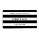 Étiquettes de bouteille d'eau à mariage rayé noir et blanc personnalisé. Modèle autocollant élégant personnalisé vin ou bouteille d'eau avec rayures modernes noir et blanc Style moderne ou typographie script pour les noms de mariée et mariée et message de remerciement. Utilisez l'eau de source comme décor de table classe ou merci pour les invités à la fête. Le logo comprend le nom ou le monogramme plus la date du mariage. Design chic do-it-yourself étiquette de boisson avec lignes horizontales. Aussi bon pour les fêtes d'anniversaire de fiançailles ou de thème nautique. Peut également être utilisé comme étiquettes de baby showers élégants.