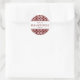 Ces autocollants de étiquette à conserves rondes personnalisés pour vos produits faits maison sont dotés d'un motif moderne rouge foncé et blanc et blanc et d'un texte rouge et blanc foncé.