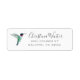 Étiquette d'adresse de retour avec un colibri à gorge rubis sur un arrière - plan blanc. Personnalisez-le en ajoutant votre nom et votre adresse. Le style de police, la taille et la couleur peuvent être modifiés en cliquant sur "customiser plus loin".