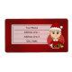 Conception avec l'illustration d'une jolie fille souriante avec de courts cheveux blonds, elle porte le costume de Père Noël rouge et blanc et tient un cadeau; avec texte modifiable modèle pour votre nom ou message, Noël design avec un dossier rouge,