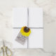 Étiquettes de faveur de douche nuptiale pour mini bouteille de vin avec un look rustique avec un grand tournesol jaune vif, script et texte moderne superposé sur des étiquettes de faveur d'impression de bois clair.