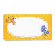 Ce étiquette présente une libellule de dessin animé colorée et un bouquet de fleurs bleues sur un arrière - plan à pois jaunes. Cliquez sur le bouton Customiser pour ajouter votre propre texte. Peut être utilisé comme étiquette de jardinage, étiquette de conserve, étiquette de bibliothèque, étiquette d'expédition, étiquette cadeau, faveur de fête et plus encore.