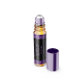 Étiquette produit pour bouteilles à rouleaux de parfum avec un design parties scintillant noir et violet. Ce étiquette contient de l'espace pour le nom du produit, le nom commercial, le poids du produit, les ingrédients, les instructions et l'adresse professionnelle. Vous devrez utiliser des ciseaux pour couper chaque étiquette.