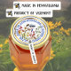 Abeille stylisée sur étiquette blanc avec votre nom d'Etat ou de pays écrit dans un texte décoratif en gras. L'autocollant est infalsifiable et le couvercle ne peut être ouvert sans détruire le étiquette.