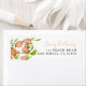 Étiquette de l'adresse de retour avec une aquarelle illustrant les fruits de pêche sur une branche d'arbre. Vous pouvez l'utiliser pour un anniversaire ou des cartes à thème baby shower.