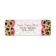 Étiquette d'adresse de retour comportant un arrière - plan d'empreinte de léopard. Personnalisez avec votre nom et votre adresse sur la section centre. Finition rose. Recherchez les articles correspondants à The Pink Schoolhouse.