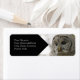 Portrait d'une chouette grise et noire Barred, gros plan de son visage, des yeux et des marques, photographié dans un environnement naturel. Couleurs neutres et muettes de gris, noir, blanc et marron. Customisez le texte de l'adresse.