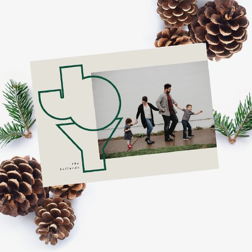 Cette carte de vacances présente une Joie typographique dans un format unique.