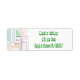 Ces étiquettes d'adresse de retour ont un design art déco de lignes en violet, rose, orange et bleu.