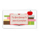 Bookplate étiquette avec pile de livres, pomme rouge et livre ouvert vierge pour le texte personnalisable. Parfait pour l'étiquetage des livres, des CD, etc. Carte graphique www.freepik.com