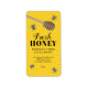 Des étiquettes de bocaux de miel personnalisés avec un arrière - plan de nid d'abeille jaune vif, des abeilles domestiques, une benne à miel en bois, et vos détails.