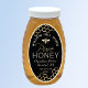 sticker au miel ovale noir élégant avec design héraldique médiéval abeille. Motif de nid d'abeille en haut et en bas de ovale. "Miel" est imprimé dans une police en relief. Le nom de l'abeille est écrit en police incurvée ci-dessus. Ce étiquette s'adapte aux bocaux classiques Queenline de 16 et 32 oz.