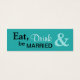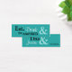 Cette petite étiquette de faveur chic comporte un arrière - plan bleu aqua et les noms de la mariée et du marié ainsi que la date du mariage dans une combinaison de noir et blanc whimsical et de lettrage classique. Le grand esperon bleu clair finit ce design. De l'autre côté de ce tag se trouve l'expression Manger, Boire & Être marié dans un style correspondant. Cette étiquette moderne est une excellente façon de finir en faveur de l'emballage. Coordination des produits disponibles. Voulez-vous modifier le style de police ou la couleur ou la taille du texte ? Cliquez sur le bouton orange "Customisez-le !" sous le design. Cela vous permettra de customiser davantage votre design.