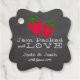 Une paire de fraises douces et illustrées décore cette étiquette rustique de pot de confiture de mariage ou de douche avec un texte personnalisé et un motif de dos assorti de fraises.