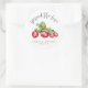 L'autocollant présente une image aquarelle de fraises avec la citation partagez l'amour en typographie gris foncé.