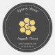 Un Sticker Étiquette modifiable pour vos pots de miel avec un arrière - plan noir et une illustration d'une abeille sur nid d'abeille. Parfait pour votre miel fait maison ou pour vendre vos produits (apéritif, vendeur de miel ou apiculteur).