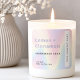 Étiquette de produit dans un style moderne et minimaliste avec votre nom d'entreprise tourné sur le côté à l'intérieur d'une boîte blanche sur un arrière - plan motif arc-en-ciel pastel doux.
