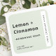 Étiquette de produit vert sauge clair (ou couleur personnalisée) dans un style moderne et minimaliste avec le nom de votre entreprise tourné sur le côté à l'intérieur d'une boîte blanche. Toutes les couleurs sont personnalisables.