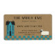 Étiquette d'expédition de style primitif sur les coordonnées kraft avec carte de visite et étiquette d'adresse de retour.