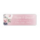 Étiquettes de retour d'adresse romantiques à l'aquarelle avec fleurs botaniques et feuillage en rose tendre et bleu marine, idéales pour un mariage moderne, un mariage romantique et un mariage dans un jardin botanique.
