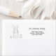 Adresse de retour Autocollants d'étiquette illustrant l'illustration d'un lapin mignon assis sur ses pattes postérieures avec marguerites de chaque côté dans l'art de ligne et les coordonnées : parfait pour Pâques, printemps, famille, agriculteur, petite entreprise, etc.