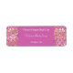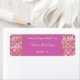 Un étiquette de savon et de cosmétiques avec un motif damassé rose dans l'arrière - plan.
