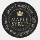 Feuille d'érable à sucre or et bordure pointillée d'or sur le noir. Le "sirop d'érable" est imprimé dans une police métallique ciselée.