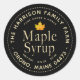 Étiquette simple et élégant de sirop d'érable rond avec les mots "sirop d'érable" dans une police en or métallique gaufrée. Bordure de ligne pointillée en or. Feuille d'érable d'automne jaune et orange.