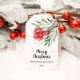 belles étiquettes de cadeau de Noël peintes à l'aquarelle avec des baies et des feuilles de verdure avec des points dorés. Personnalisable !