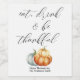 Étiquette de vin rustique avec citrouille. Les détails de votre événement peuvent être customisés dans n'importe quelle couleur ou taille de police de votre choix.