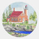 Phare du port d'Eagle, aquarelle de Kristina Anderson sur un autocollant rond. Il s'agit d'un phare emblématique de la péninsule supérieure du Michigan.