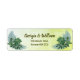 L'adresse de retour de mariage personnalisée et élégante présente une variété de Feuilles et de palmiers dans le style rustique avec arrière - plan vert poussiéreux. Voir les articles correspondants dans la collection de Mariages rustiques Dusty Green Greenery.
