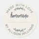 Étiquette ivoire faite avec amour autocollant fait maison avec une typographie noir foncé et un design de lettrage manuscrit. Parfait pour sceller les produits de boulangerie, les pots de confiture, les biscuits, le pain, les boîtes à tarte, l'emballage de petite entreprise, les faveurs de fête et les cadeaux faits à la main. Caractéristiques une ligne de nom personnalisable, ce qui la rend idéale pour les boulangers à domicile, les créateurs et les petites marques à la recherche d'une touche finale chaude et propre. Personnalisez facilement avec votre nom ou les détails de votre boutique.